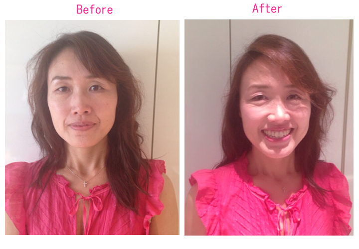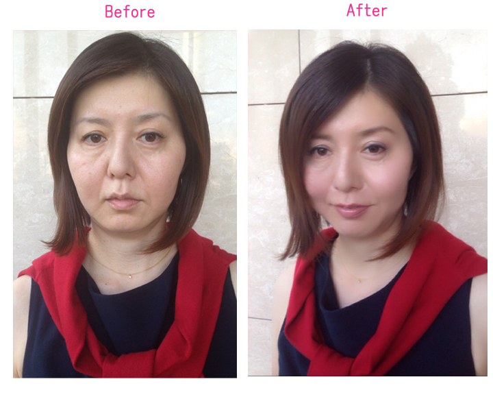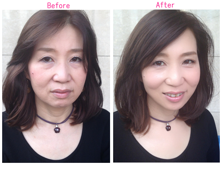 このコースでは、顔半分を三宅さやかさんがメイクして、半分はご自分で練習します。